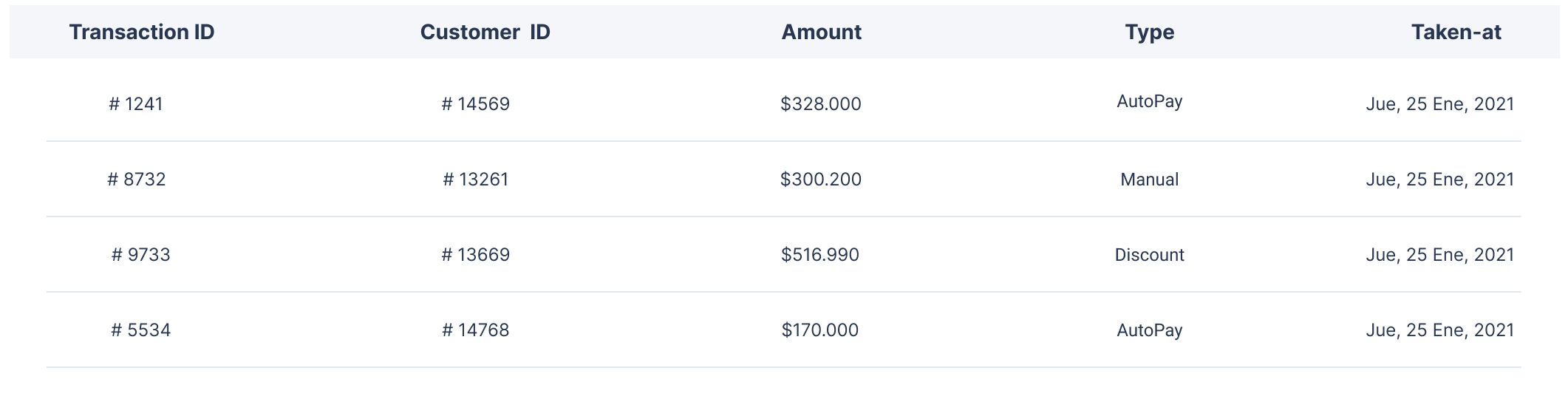 In the Transactions sub-section, a transaction refers to a collection of payments. If a customer chooses to pay off all their debts or make multiple payments in one transaction, the total amount will be displayed in this sub-section. The payments sub-section will show how the total amount was distributed across the different payments.