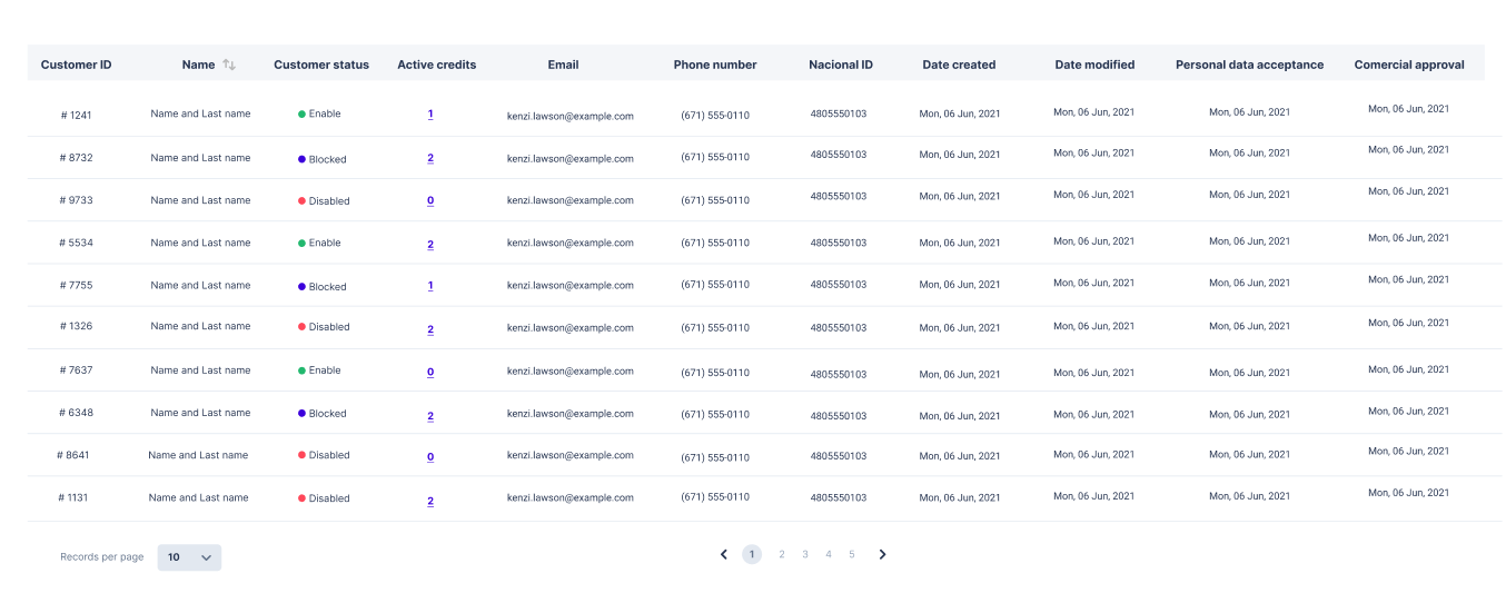 Your customers will be displayed in a table format, showcasing the following fields for each of them: