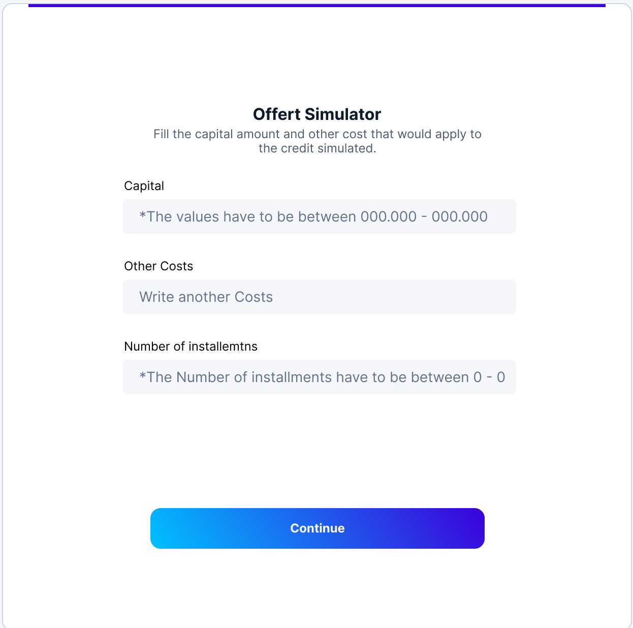 - Enter the required information to simulate your offer: